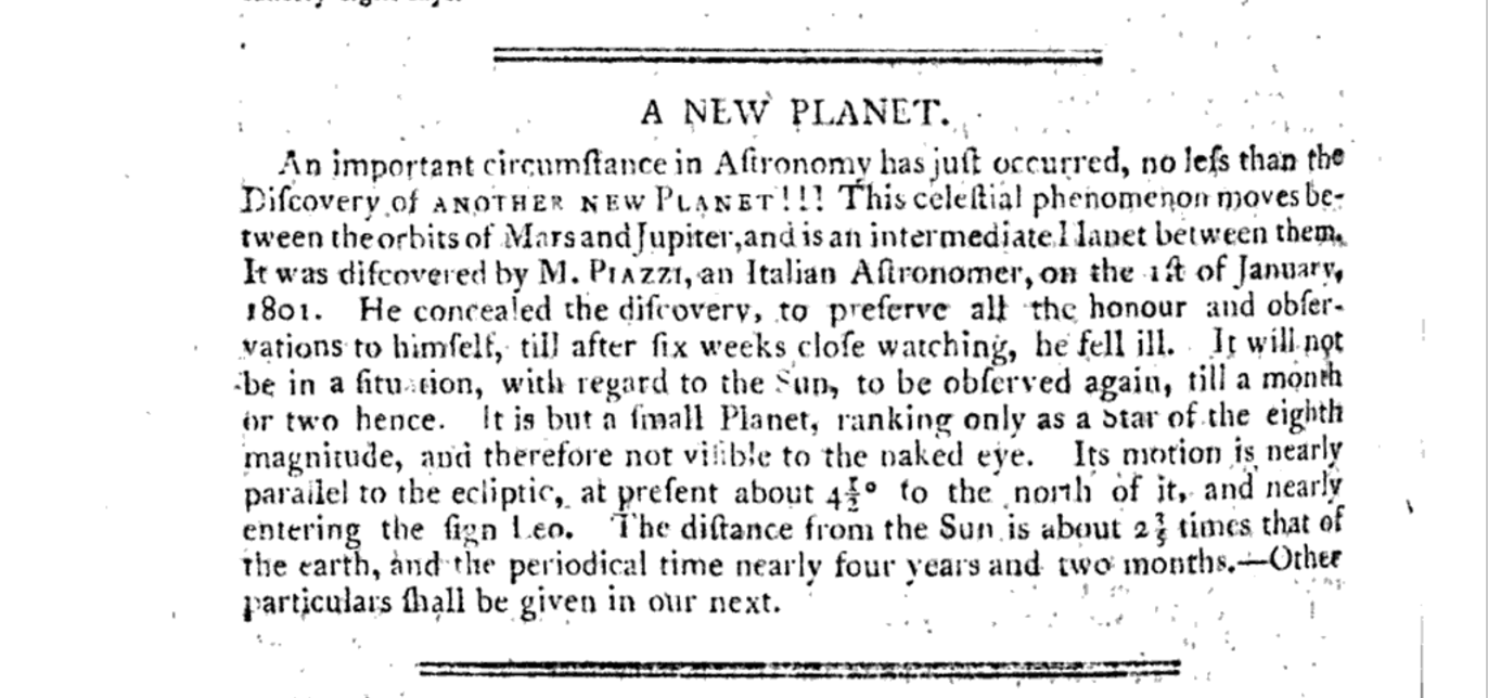 Piazzi, G., n.d. Fortgesetzte nachrichten über den längst vermutheten neuen haupt-planeten unseres sonnen-systems, in:. pp. 279–283.