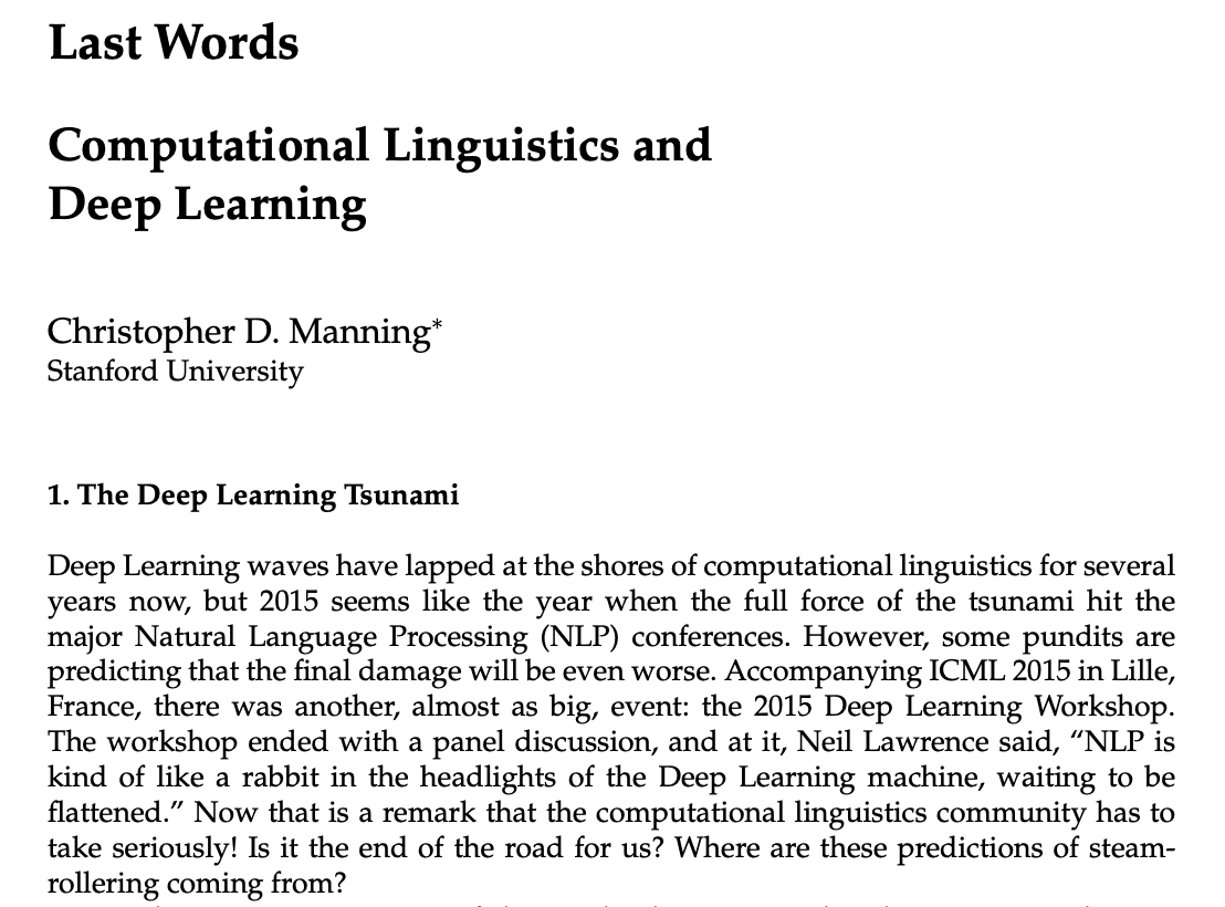 Figure: Chris Manning quoting me in 2015 on the coming wave in Natural Language Processing in Manning (2015).